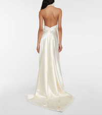 Stella open-back silk and wool-blend satin halterneck gown Ivory