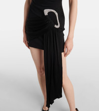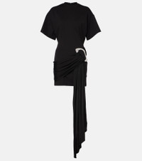 Embellished draped jersey minidress