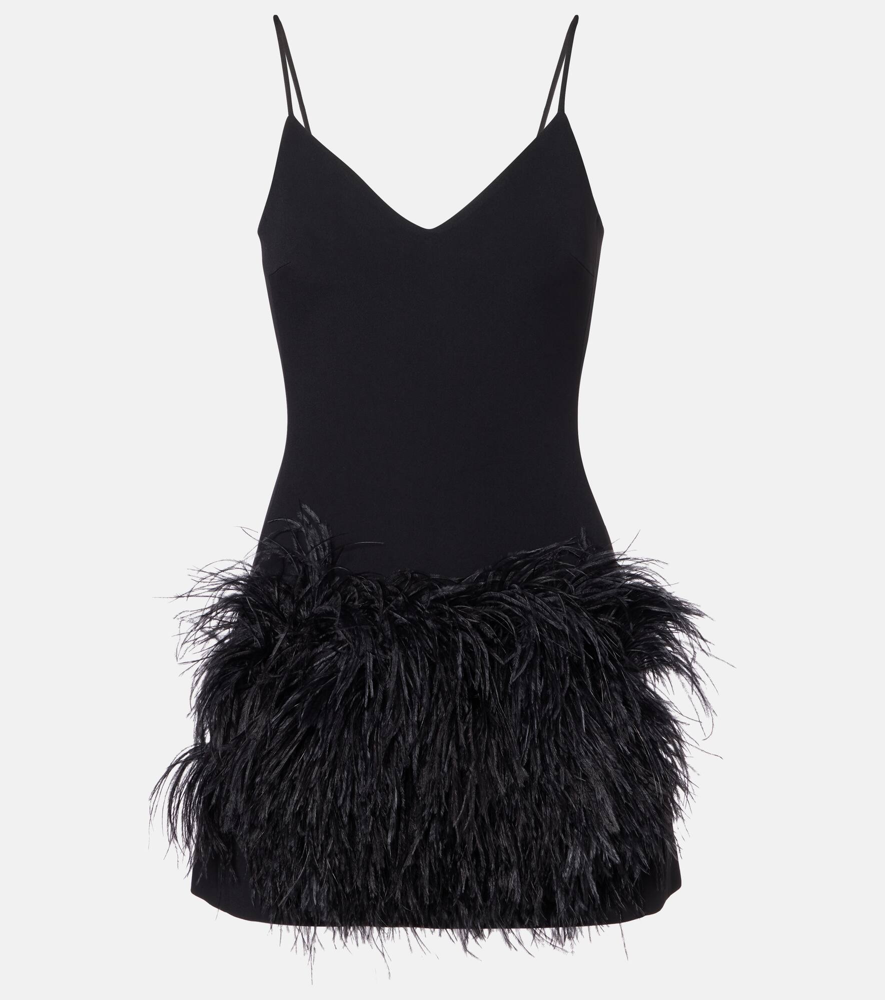 This David Koma minidress is a glamorous piece for special events and refined occasions. The garment is structured with a close-fitting bodice that gives way to a charming feather-trimmed skirt. Product Details - Material: 52% acetate, 45% viscose, 3% elastane - Care instructions: dry clean - Made in the UK - Designer color name: Black - Item color: black - Lining: 97% polyester, 3% elastane - Trim: 100% ostrich feathers - Collar: V-neck - Closure: zipped back - Item number: P01080147 Size & Fit - True to size - Low back - Cinched waist - Non-stretchy fabric - The model seen in the picture is 178cm-5'10" and wearing a size UK 8