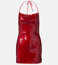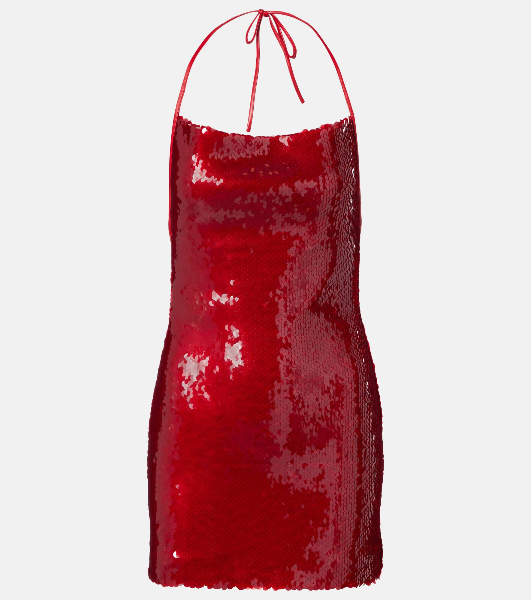 David Koma's glamorous styles are the key to making an entrance when it matters the most. This bold minidress is covered by all-over sequins and has a self-tie halterneck silhouette. Product Details - Material: 90% polyester, 10% polyamide - Care instructions: do not wash - Made in the UK - Designer color name: Red - Item color: red - Lining: 64% viscose, 36% polyester - Trim: 100% leather - Closure: concealed zipper, self-ties - Item number: P01051681 Size & Fit - True to size - Petite sizing - Low back - Cinched waist - Non-stretchy fabric - The model seen in the picture is 178cm-5'10" and wearing a size UK 8