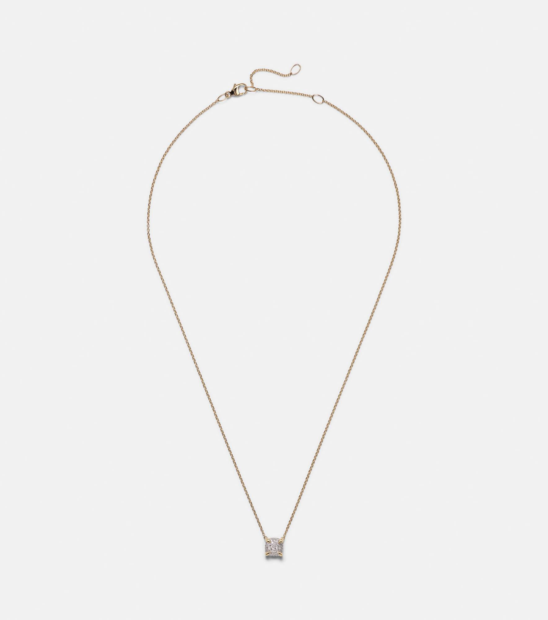 David Yurman is celebrated for its masterful fusion of impeccable craftsmanship and artistic vision, creating iconic pieces that exude refined elegance and timeless sophistication. The Petite Chatelaine® necklace is made from 18kt yellow gold and adorned with 0.17ct pave-set diamonds. Product Details - Material: 18kt yellow gold - Made in the USA - Item color: gold - Stone I: diamonds, 0.16ctw, round-cut, pave setting - This piece features natural diamonds only - Item number: P01057125 Size & Fit - Adjustable length - Width 1mm-0.05" - Pendant length 8mm-0.3" - Pendant width 8mm-0.3" - Min. length 40,5cm-16" - Max. length 45,5cm-18"