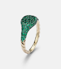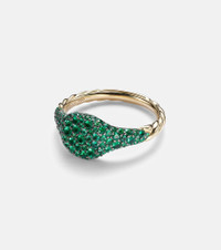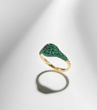Petite Pavé 18kt gold pinky ring with emeralds