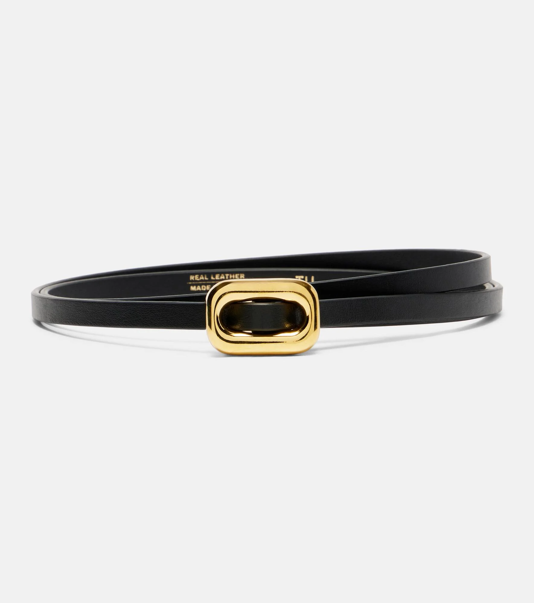 With distinctive hardware and refined materials, Dehanche transforms the belt into a statement piece. Crafted from leather, the Venura belt showcases a slim silhouette with a gold-plated, rectangular buckle. Product Details - Material: calf leather - Lining: leather - Made in Italy - Designer color name: Black/Gold - Item color: black - Hardware color: gold - Includes: dust bag - Item number: P01118115 Size & Fit - Length 126cm-49.5" - Width 0,8cm-0.5" - Buckle width 2,6cm-1"