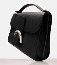 The Brilliant shoulder bag from Delvaux exudes quiet sophistication with its minimalistic, refined silhouette. Crafted from leather, the piece features a shoulder strap and a flap closure adorned with a metal buckle. Product Details - Material: calf leather - Lining: suede - Made in France - Color: black - Designer color name: Black - Item color: black - Hardware color: silver - Top handle, Detachable, adjustable shoulder strap - Internal details: single compartment - Closure: buckle fastening - Includes: dust bag - Item number: P01098709 Size & Fit - Length 23cm-9" - Height 17cm-6.5" - Width 8,5cm-3.5"