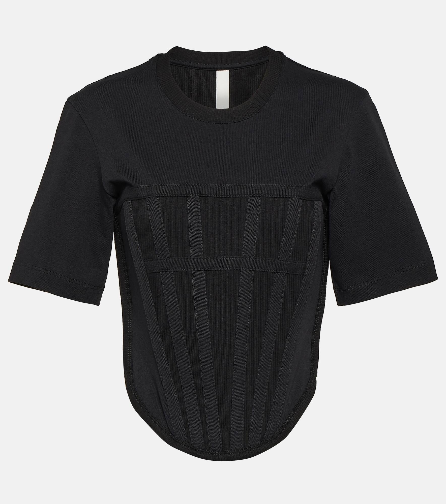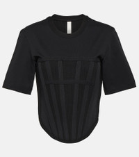 Dion Lee takes a sculptural approach to the classic T-shirt by incorporating a ribbed-knit corset bodice detail. Made from cotton jersey, the style has a crew neckline and dropped, rounded hemline. Product Details - Material: 100% cotton - Care instructions: dry clean - Made in Portugal - Designer color name: Black - Item number: P00828163 Size & Fit - True to size - Internal boned corset for support - Fitted - Mid-weight material - Stretchy fabric - Cropped - The model seen in the picture is 178cm-5'10" and wearing a size XS