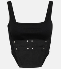 Product Details - Material: 100% organic cotton - Care instructions: dry clean - Made in Portugal - Designer color name: Black - Material II: 75% organic cotton, 25% recycled polyamide - Closure: zipped back - Item number: P00888202 Size & Fit - True to size - Internal boned corset for support - Fitted - Non-stretchy fabric - Cropped - The model seen in the picture is 178cm-5'10" and wearing a size UK 8