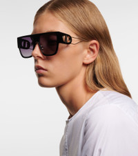 Inlaid with golden CD branding at the temples, these 30Montaigne S3U sunglasses from DIOR Eyewear are a nod to one of the house's signature bags. They're made from acetate and gold-toned metal, in an oversized flat-top silhouette with tonal tinted lenses. Wear your hair slicked back to keep them in full focus. Product Details - Frame color: black, gold - Frame material: acetate, metal - Lens color: grey blue - comes with cleaning cloth - comes in a logo-embossed case - The color of the case may vary - Lens filter category 3 - Made in Italy - Item number: P00574243 Size & Fit - Lens width: 58mm-2.3" - Bridge size: 18mm-0.7" - Earpiece length: 130mm-5.1"