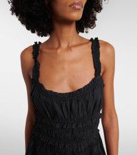 Beloved for its soft, nostalgic aesthetic, Doen celebrates womanhood in all its forms. The Marianne midi dress is made from crisp cotton poplin, featuring a shirred bodice with delicate ruffles. Product Details - Material: 100% cotton (organic) - Care instructions: hand wash cold - Made in India - Color: black - Designer color name: Black - Item number: P01137106 Size & Fit - True to size - Cinched waist - Elasticated waist - Non-stretchy fabric - The model seen in the picture is 178cm-5'10" and wearing a size XS