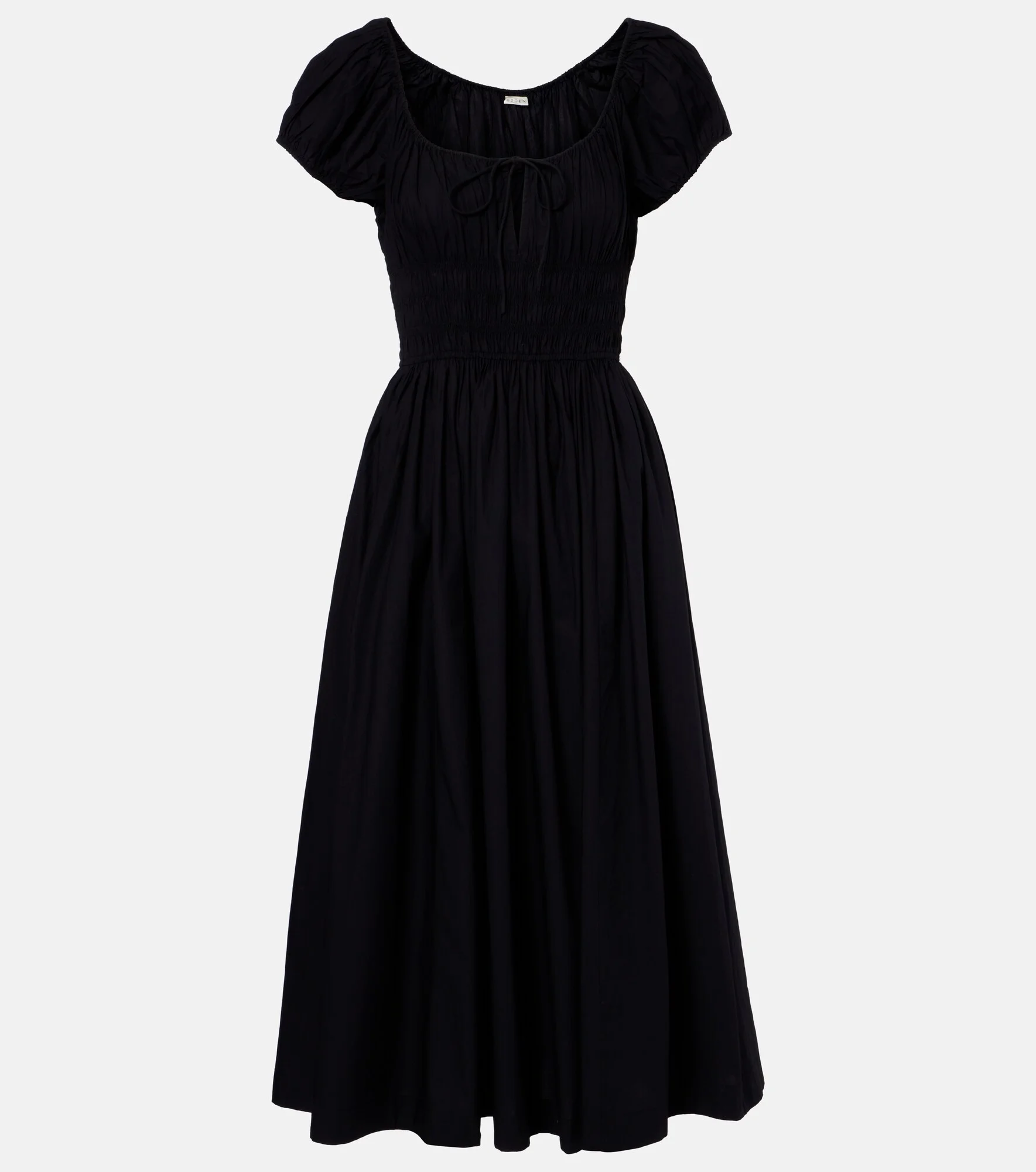 Quinn Tie-detailed Shirred Organic Cotton-poplin Midi Dress