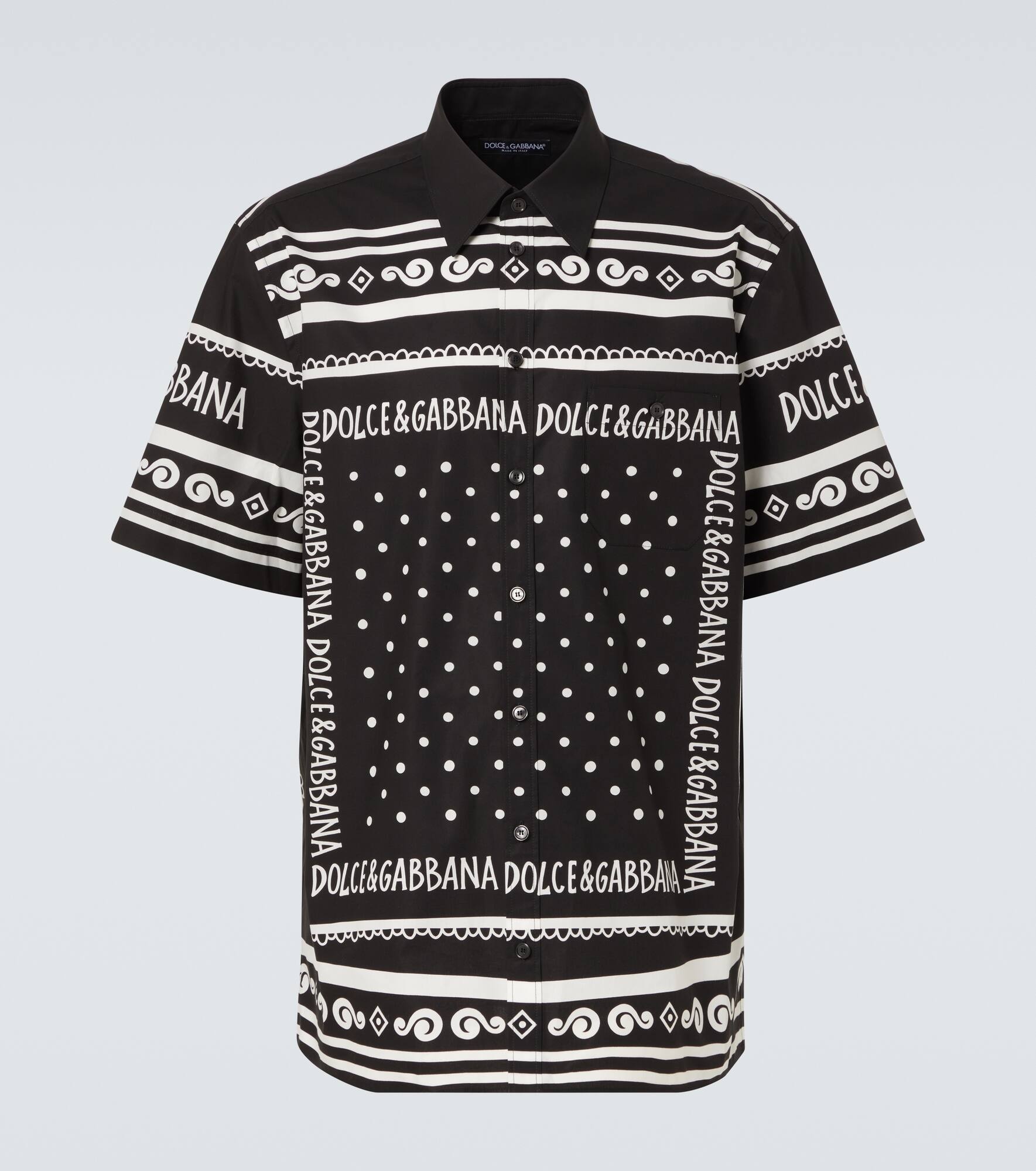 Product Details - Material: 100% cotton - Care instructions: machine wash at 30 degrees - Made in Italy - Designer color name: Bandana Bca Fdo.Nero - Closure: button-down - Pockets: breast pocket - Item number: P00984494 Size & Fit - True to size - Without pleats in the back - Classic fit - Non-stretchy fabric - Falls below the hip - The model in the picture is 185cm-6'1" and wearing a size EU 41