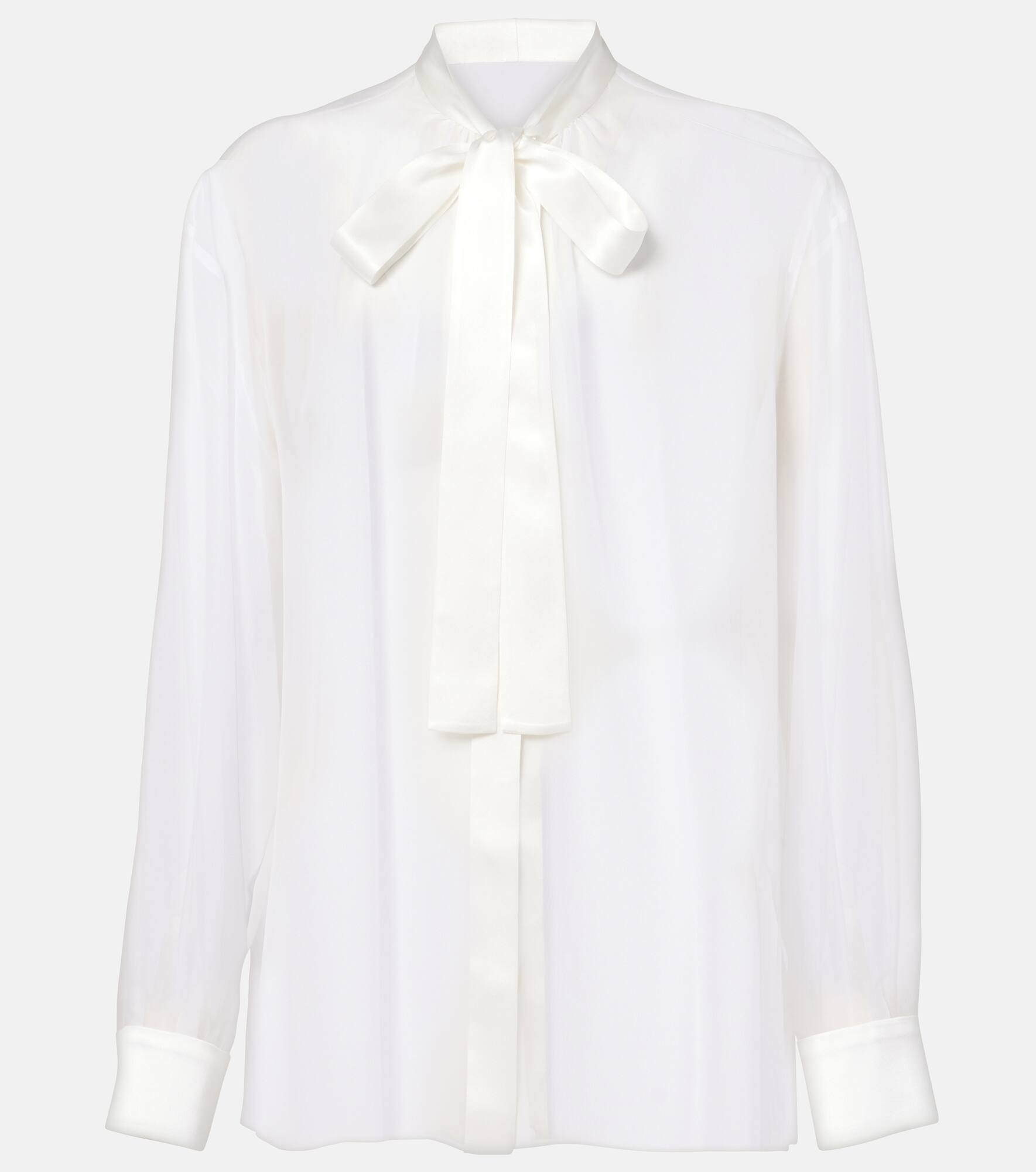 Product Details - Material: 100% silk - Care instructions: dry clean - Made in Italy - Designer color name: BIanco Ottico - Closure: buttoned front - Item number: P01021144 Size & Fit - True to size - Dropped shoulders - Semi-sheer - Designed for a loose fit - Non-stretchy fabric - Falls below the hip - The model seen in the picture is 178cm-5'10" and wearing a size IT 40