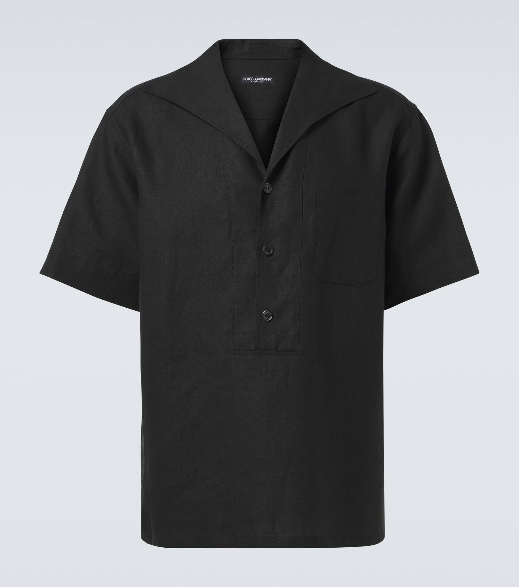 Warm climates call for lightweight styles, such as this bowling shirt from Dolce&Gabbana. It's made from breathable linen to a laid-back silhouette and features a patch pocket on the front. Product Details - Material: 100% linen - Care instructions: dry clean - Made in Italy - Designer color name: Black - Closure: button-down - Pockets: breast pocket - Item number: P00984054 Size & Fit - True to size - With pleats in the back - Classic fit - Non-stretchy fabric - Falls below the hip - The model in the picture is 185cm-6'1" and wearing a size EU 41
