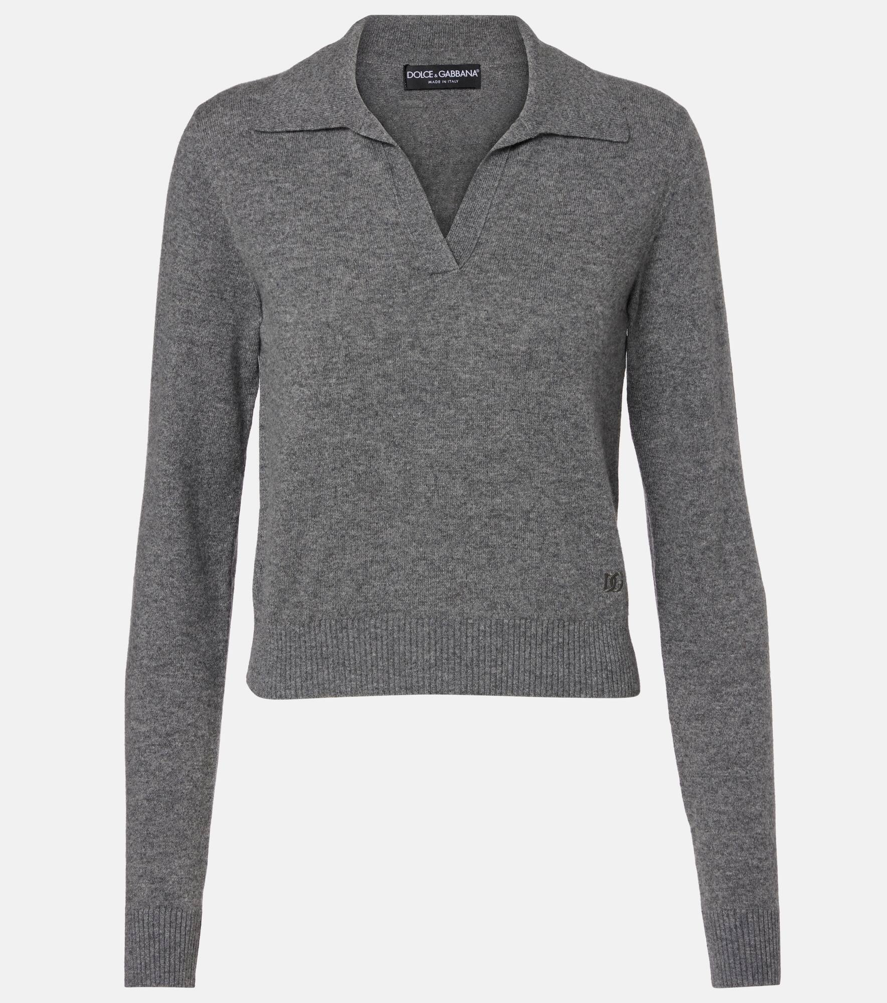 Dolce&Gabbana creates collections that move between traditional Sicilian aesthetic and quiet sophistication with clean minimalism. This cashmere polo sweater is designed with a slightly cropped silhouette and features a classic collar and a subtle V-neckline. Product Details - Material: 100% cashmere - Care instructions: dry clean - Made in Italy - Designer color name: Melange Grigi - Item color: gray - Embroidery: 90% viscose, 10% polyester - Collar: polo collar - Cuff: ribbed - Hem: ribbed - Item number: P01052462 Size & Fit - True to size - Straight fit - Slightly cropped - The model seen in the picture is 178cm-5'10" and wearing a size IT 40