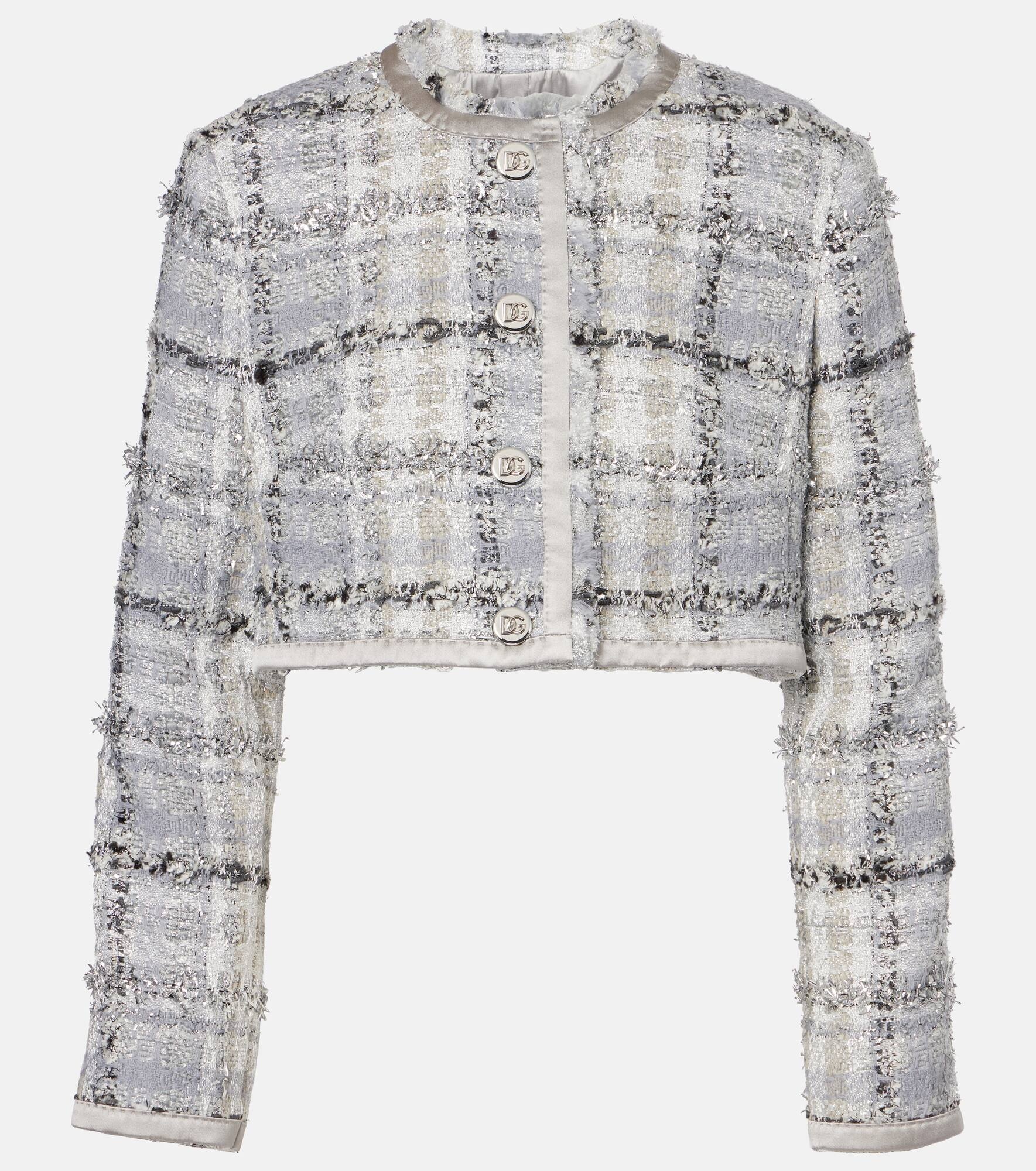 Product Details - Material: 28% viscose, 18% wool, 15% polyamide, 13% acrylic, 11% metallic fibres, 9% polyester, 8% silk - Care instructions: dry clean - Made in Italy - Designer color name: Quadri-Check-Tartan - Lining: 92% silk, 8% elastane - Closure: button-down - Item number: P01021139 Size & Fit - True to size - Shoulder pad inserts - Straight fit - Non-stretchy fabric - Cropped - The model seen in the picture is 178cm-5'10" and wearing a size IT 40