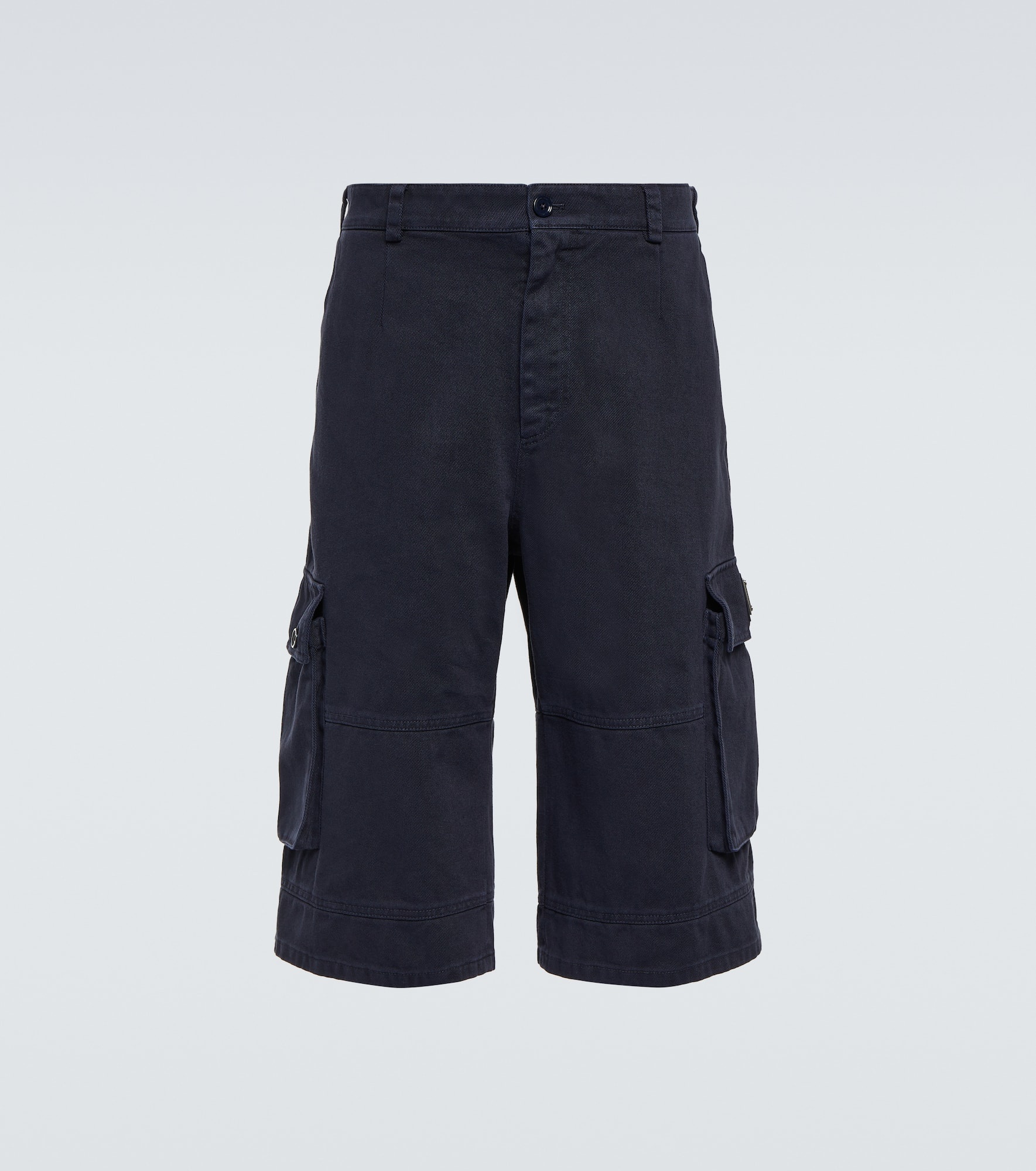 Product Details - Material: 100% cotton - Care instructions: machine wash at 30 degrees - Made in Italy - Designer color name: Blu Scurissimo 3 - Closure: zipper fly, button fastening - Pockets: side slit pockets, back pockets, cargo pockets - Belt loops - Cargo pants - Above the knee - Item number: P00875653 Size & Fit - Fits large to size - we recommend trying one size smaller - Non-stretchy fabric - Wide-leg - Low-rise - The model in the picture is 185cm-6'1" and wearing a size IT 46
