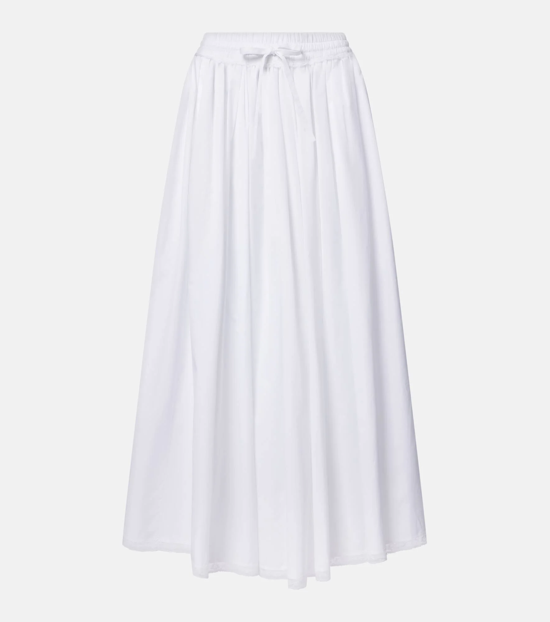 This Dolce&Gabbana midi skirt creates an ensemble that blends minimalism with flawless sophistication. The piece is made from cotton poplin with a lace-trimmed hemline, and the elasticated waistband is finished with a self-tie drawstring. Product Details - Material: 99% cotton, 1% polyamide - Care instructions: dry clean - Made in Italy - Color: white - Designer color name: Bianco Ottico - Closure: concealed zipped back - Elasticated drawstring waist - Item number: P01122972 Size & Fit - True to size - Elasticated waist - Adjustable at the waist - Non-stretchy fabric - High-waisted - The model seen in the picture is 178cm-5'10" and wearing a size IT 40