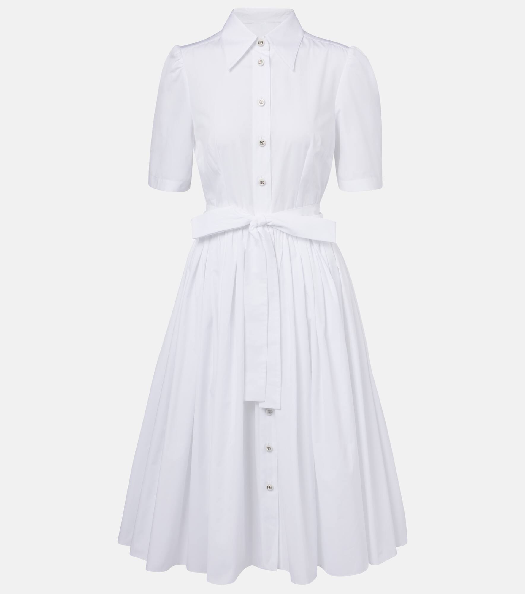 Sicilian culture is at the heart of Dolce&Gabbana's aesthetic, which attributes most of its bold styles to its Italian heritage. This shirt dress is crafted in Italy from cotton poplin. Product Details - Material: 100% cotton - Care instructions: dry clean - Made in Italy - Designer color name: BIanco Ottico - Item color: white - Closure: buttoned front - Collar: classic (Straight point) - Item number: P01040815 Size & Fit - True to size - Cinched waist - Non-stretchy fabric - The model seen in the picture is 178cm-5'10" and wearing a size IT 40
