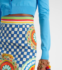 Dolce&Gabbana's cropped cardigan is exclusively designed for Mytheresa. Made from finely knit yarn, this form-fitting style features delicate eyelet detailing and a classic crewneck collar. Product Details - Material: 50% rayon, 37% nylon, 13% elastane - Care instructions: dry clean - Made in Italy - Designer color name: Light Turquoise - Item color: blue - Slim fit - Length: cropped - Sleeves: long-sleeved - Closure: buttoned front - Cuff: ribbed - Hem: ribbed - Collar: crewneck - Item number: P01061366 Size & Fit - True to size - Fitted - Stretchy fabric - Cropped - Height of model is 174cm-68.5" and wears a size IT 40