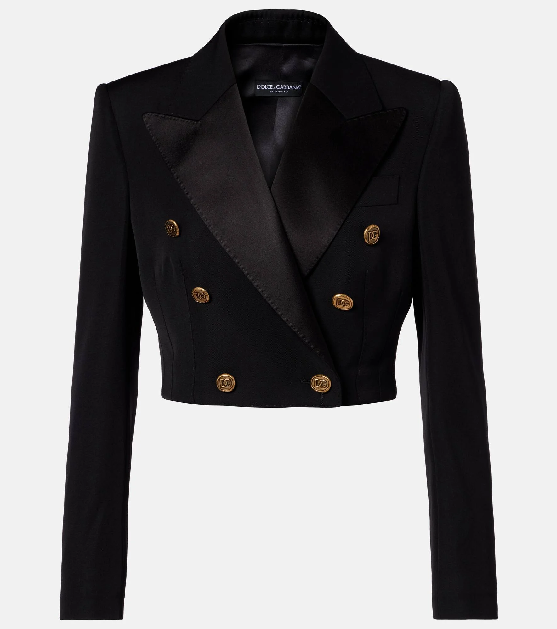 Sicilian culture is on display in Dolce&Gabbana's aesthetic, with bold styles inspired by the brand's Italian heritage. Crafted from a wool and silk blend, this double-breasted jacket features gold-toned buttons, elegant shoulder pads, and a cropped silhouette. Product Details - Material: 85% wool, 12% silk, 3% polyester - Care instructions: dry clean - Made in Italy - Color: black - Designer color name: Nero - Lining: 92% silk, 8% elastane - Closure: buttoned front - Shoulder pads - Item number: P01122861 Size & Fit - True to size - Shoulder pad inserts - Cinched waist - Non-stretchy fabric - Cropped - The model seen in the picture is 178cm-5'10" and wearing a size IT 40