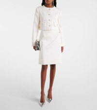 Product Details - Material: 67% wool, 27% viscose, 6% polyamide - Care instructions: dry clean - Made in Italy - Designer color name: Bianco Panna Chiaris - Closure: buttoned front - Pockets: flap pockets - Lining: 92% silk, 8% elastane - Item number: P00956960 Size & Fit - True to size - Shoulder pad inserts - Straight fit - Non-stretchy fabric - Cropped - The model seen in the picture is 178cm-5'10" and wearing a size IT 40