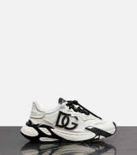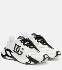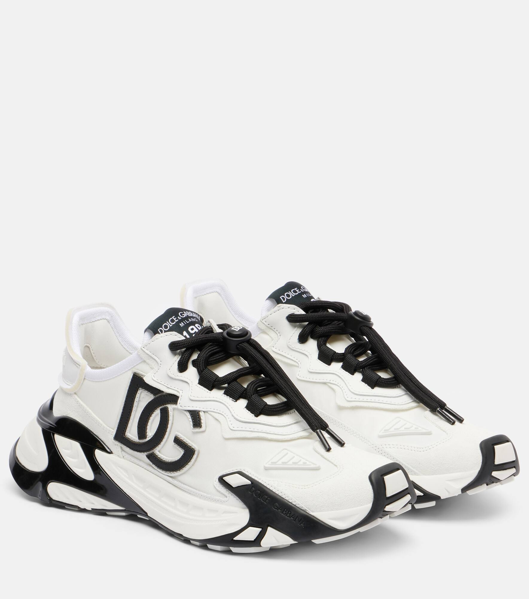 Sicilian culture is at the heart of Dolce&Gabbana's aesthetic, which attributes most of its bold styles to its Italian heritage. The Day Faster sneakers feature suede trims, signature DG logo detailing, and modern chunky soles. Product Details - Upper: leather (suede), fabric - Lining: leather, fabric - Sole: fabric insole, rubber sole - Toe shape: round toe - Made in Italy - Includes: shoe box - Designer color name: Bianco/Bianco - Item color: white, black - Closure: lace-up - Item number: P01075342 Size & Fit - True to size - European sizes - 3,5cm-1.5" platform (size EU 38) - 6cm-2.5" wedge heel (size EU 38)