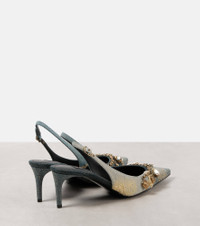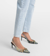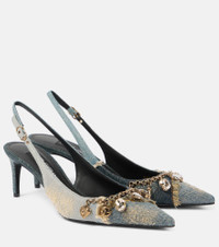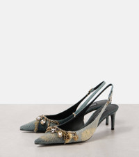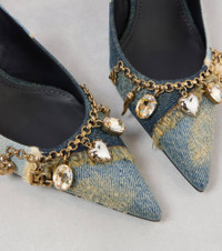 Product Details - Upper: fabric - Lining: leather - Sole: leather insole and sole - Toe shape: pointed toe - Made in Italy - Includes: dust bag, shoe box - Designer color name: Blu - Closure: buckle fastening - Trim: brass, glass - Item number: P00949019 Size & Fit - True to size - European sizes - 6,5cm-2.5" heel (size EU 38)