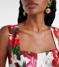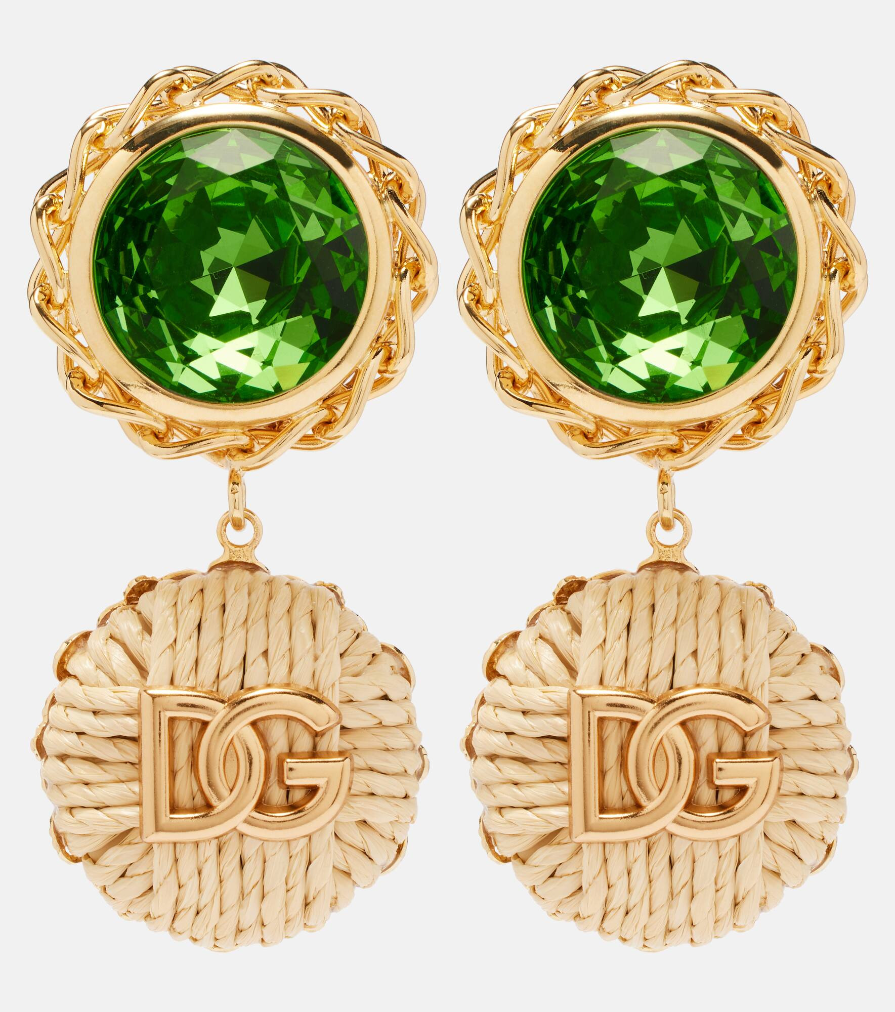 Sicilian culture is at the heart of Dolce&Gabbana's aesthetic, which attributes most of its bold styles to its Italian heritage. Crafted in Italy, these clip-on earrings are embellished with crystals and showcase the DG motif. Product Details - Material: fabric, brass, glass - Made in Italy - Item color: gold, green - Includes: box - Item number: P01064536 Size & Fit - Length 6cm-2.5" - Width 2,5cm-1"