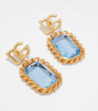 These clip-on earrings from Dolce&Gabbana will make a captivating finishing touch to your ensembles. Expertly crafted from gold-toned brass, this pair is centered around opulent crystals framed by chains and features DG logo motifs for a signature touch. Product Details - Material: crystal, brass - Made in Italy - Item color: blue, gold - Designer color name: Oro - Closure: clip-on - Item number: P01064539 Size & Fit - Length 7,5cm-3" - Max. width 3,5cm-1.5"