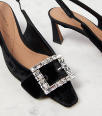 Sicilian culture is at the heart of Dolce&Gabbana's aesthetic, which attributes most of its bold styles to its Italian heritage. These velvet-finish pumps make a statement with their eye-catching crystal buckle detail. Product Details - Upper: fabric - Lining: leather - Sole: leather insole and sole - Toe shape: square toe - Made in Italy - Includes: shoe box, dust bag - Designer color name: Nero - Closure: elasticated strap - Hardware color: silver - Item number: P00991583 Size & Fit - True to size - European sizes - 7cm-3" heel (size EU 38)