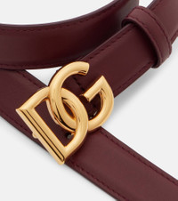 This belt from Dolce&Gabbana showcases a fine leather construction and slim silhouette. The design is defined by the signature DG logo buckle, presented here in a dazzling gold-toned finish. Product Details - Material: leather - Lining: leather - Made in Italy - Color: burgundy - Designer color name: Bordeaux - Item color: burgundy - Hardware color: gold - Item number: P01129323 Size & Fit - Width 2,5cm-1" - Buckle width 3,3cm-1.5"