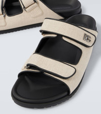 These Dolce&Gabbana sandals are crafted in Italy from durable canvas with contrasting leather trim. Finished with the iconic DG logo, this pair is the perfect footwear choice for effortless warm-weather style. Product Details - Upper: leather, fabric - Lining: leather - Sole: rubber insole and sole - Toe shape: round toe - Made in Italy - Includes: dust bag, shoe box - Designer color name: Avorio/Nero - Item color: beige, black - Item number: P01077054 Size & Fit - True to size - Half sizes please take the next size up - European sizes
