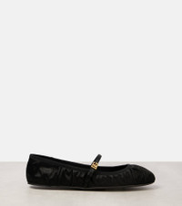 These satin ballet flats from Dolce&Gabbana make every step you take an elegant one. Adorned with the brand's iconic gold-toned DG logos, their crossover straps and gros-grain piping are complemented by branded leather soles. Product Details - Upper: fabric - Lining: leather - Sole: leather insole and sole - Toe shape: almond toe - Made in Italy - Includes: shoe box, dust bag - Designer color name: Nero/Nero - Item color: black - Closure: buckle fastening - Hardware color: gold - Item number: P01027781 Size & Fit - Fits slightly large to size - we recommend trying a half size smaller - European sizes