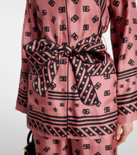 Silk twill pajama shirt with all-over DG logo scarf print