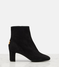 Sicilian culture is at the heart of Dolce&Gabbana's aesthetic, which attributes most of its bold styles to its Italian heritage. These ankle boots are crafted from velvety smooth suede with signature DG hardware at the heels. Product Details - Upper: goat leather (suede) - Lining: leather - Sole: leather insole, leather and rubber sole - Toe shape: square toe - Made in Italy - Includes: shoe box - Designer color name: Nero - Item color: black - Hardware color: gold - Closure: zipped side - Item number: P01075335