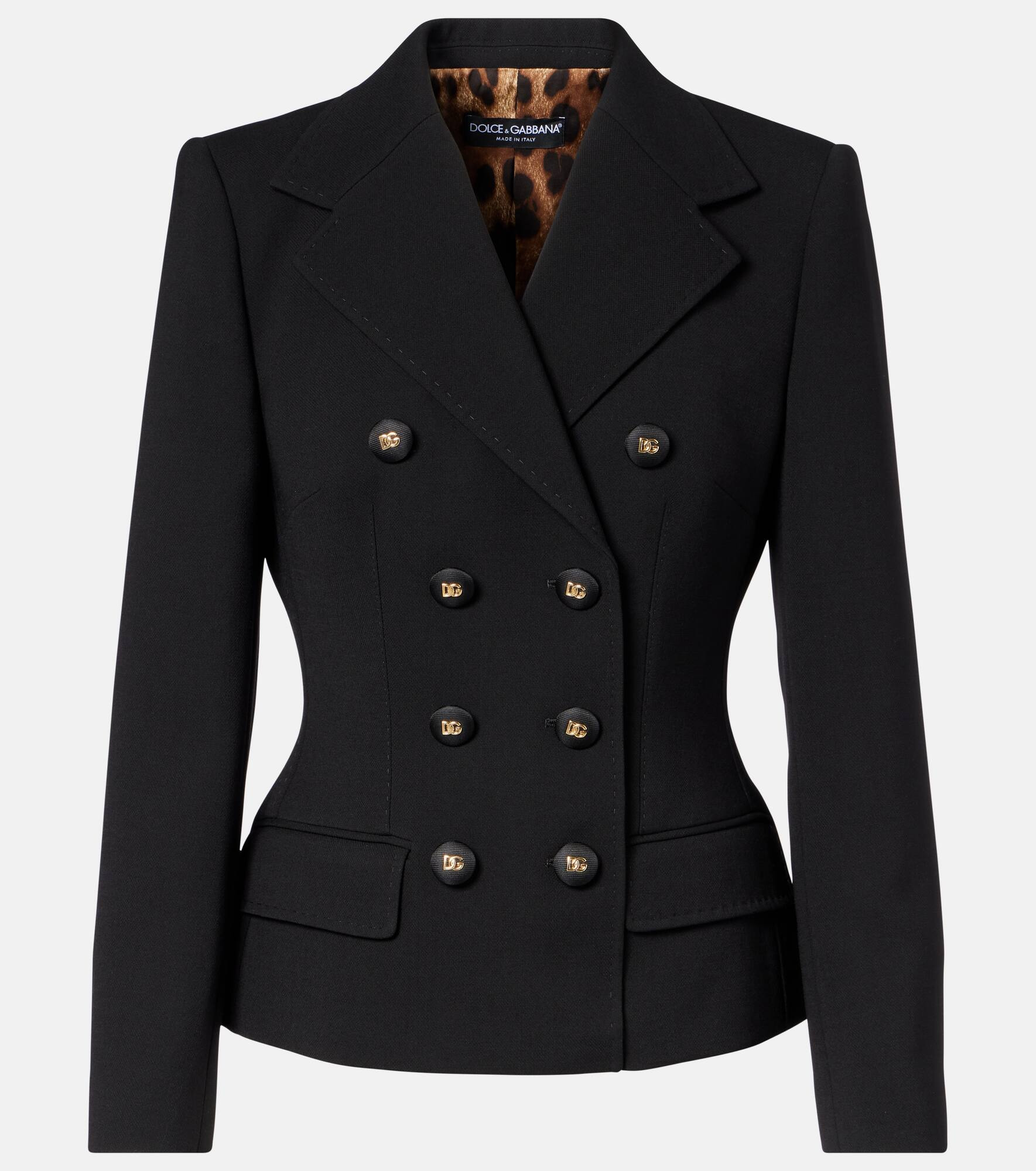 Amplify your tailoring collection with pieces like this blazer from Dolce&Gabbana. Expertly made from virgin wool and lined with silk satin, the design is complete with notched lapels, shoulder pads, and DG-embellished grosgrain buttons. Product Details - Material: 100% virgin wool - Care instructions: dry clean - Made in Italy - Designer color name: Nero - Item color: black - Lining: 97% polyester, 3% elastane - Closure: double-breasted (six buttons) - Notched lapel - Cuff: four buttons - Shoulder pads - Pockets: flap pockets - Fully lined - Item number: P01041121 Size & Fit - True to size - Shoulder pad inserts - Cinched waist - Non-stretchy fabric - Falls to the hip - The model seen in the picture is 178cm-5'10" and wearing a size IT 40