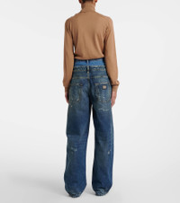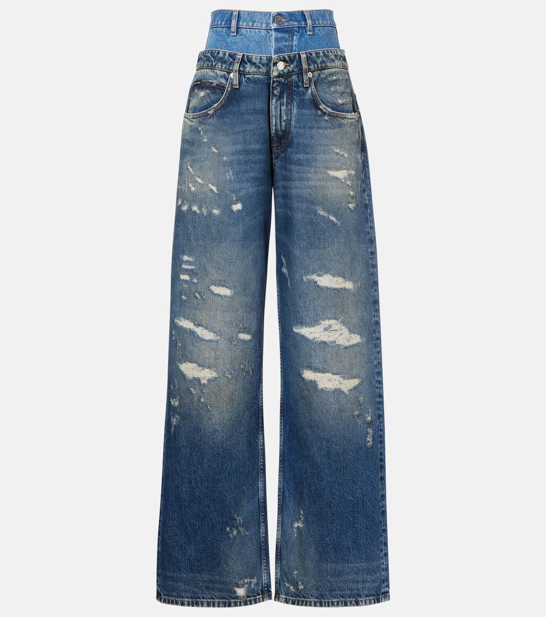 Enjoy these statement-making distressed wide-leg jeans from Dolce&Gabbana. Characterized by the double-waisted high-rise layered design, the pair is made in Italy from pure cotton denim. Product Details - Material: 100% cotton - Care instructions: machine wash at 30 degrees - Made in Italy - Designer color name: Blue - Item color: blue - Closure: zipper fly, button fastening - Pockets: five pockets - Belt loops - Item number: P01083655 Size & Fit - True to size - Non-stretchy fabric - Wide-leg - High-rise - The model seen in the picture is 178cm-5'10" and wearing a size IT 40
