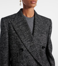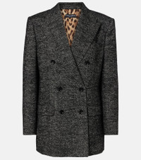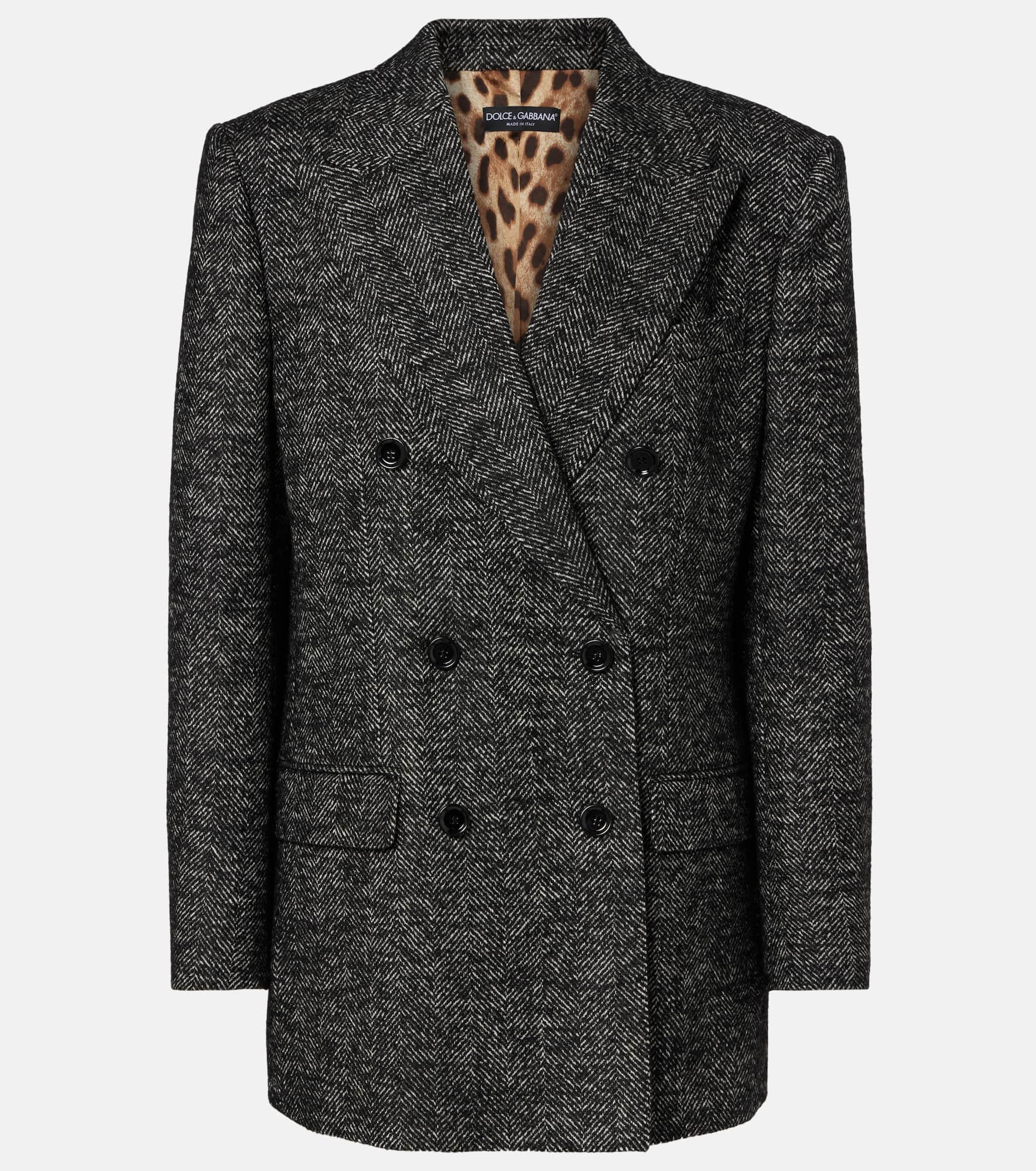 This Dolce&Gabbana double-breasted jacket will keep you warm and elegant during the cold season. The garment is crafted from a wool-blend and flaunts a herringbone motif and a leopard-print lining. Product Details - Material: 56% wool, 25% polyester, 19% acrylic - Care instructions: dry clean - Made in Italy - Designer color name: Fantasia - Item color: black, white - Lining: 97% polyester, 3% elastane - Peak lapel - Cuff: four buttons - Pockets: flap pockets, breast pocket - Closure: double-breasted (six buttons) - Vent: single - Item number: P01052468 Size & Fit - True to size - Shoulder pad inserts - Designed for a loose fit - Non-stretchy fabric - Falls below the hip - The model seen in the picture is 178cm-5'10" and wearing a size IT 40