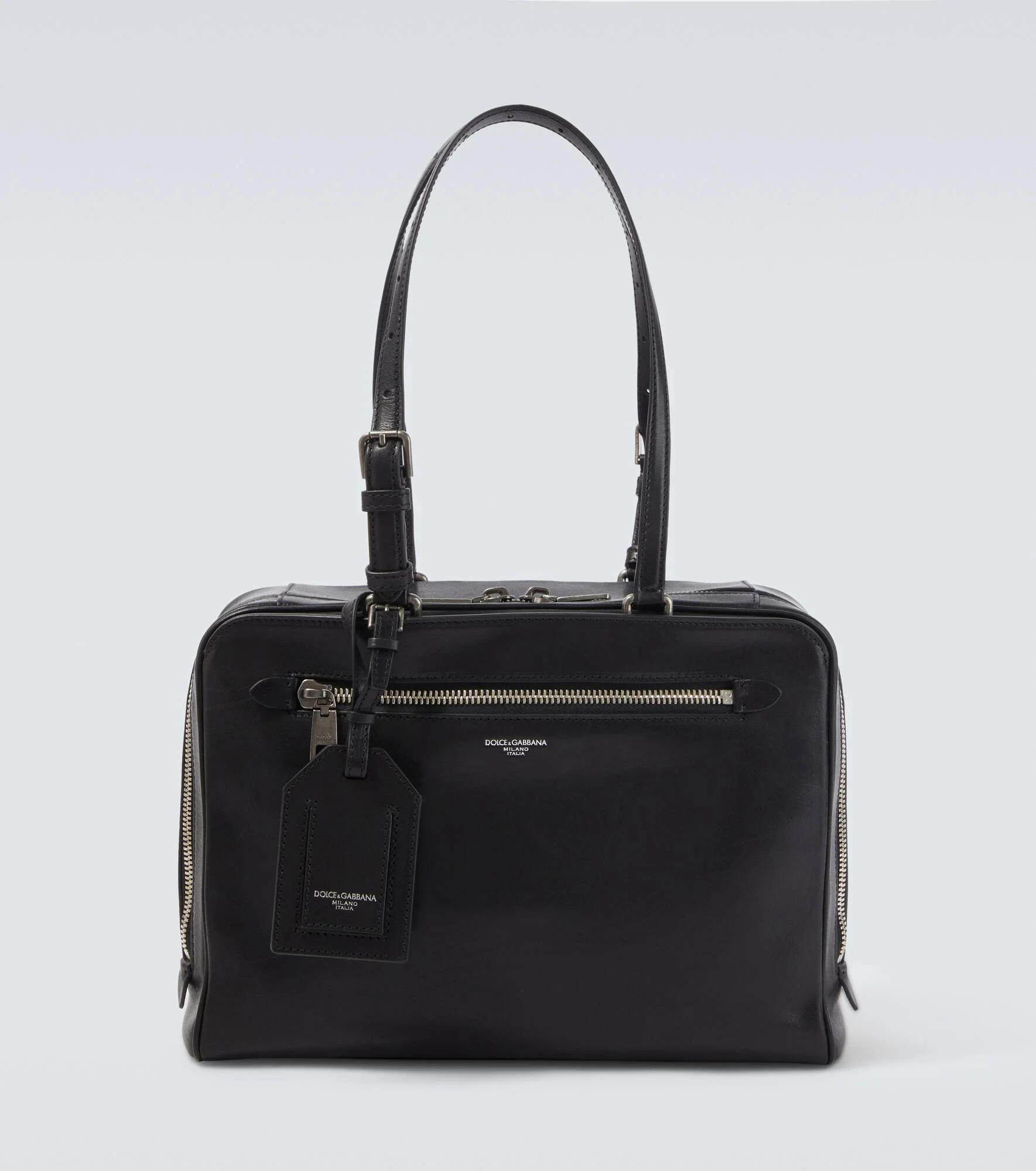 Be on the go in style with the Ellis briefcase from Dolce&Gabbana. Crafted in Italy from supple leather, the versatile design boasts long adjustable top handles, silver-toned hardware, and a detachable luggage tag. Product Details - Material: calf leather - Lining: leather - Made in Italy - Color: black - Designer color name: Black - Item color: black - Hardware color: brass - Adjustable shoulder straps - Internal details: internal slot pocket, internal zipped pocket - Detachable address tag - Zipped front pocket - Closure: two-way zipped top - Includes: dust bag - Item number: P01049972 Size & Fit - Height 24cm-9.5" - Width 33cm-13" - Depth 11cm-4.5" - Pendant length 19cm-7.5" - Pendant width 6,5cm-2.5" - Adjustable shoulder strap - Min. length shoulder strap 33cm-13" - Max. length shoulder strap 60cm-23.5"