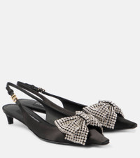 Embellished satin slingback pumps