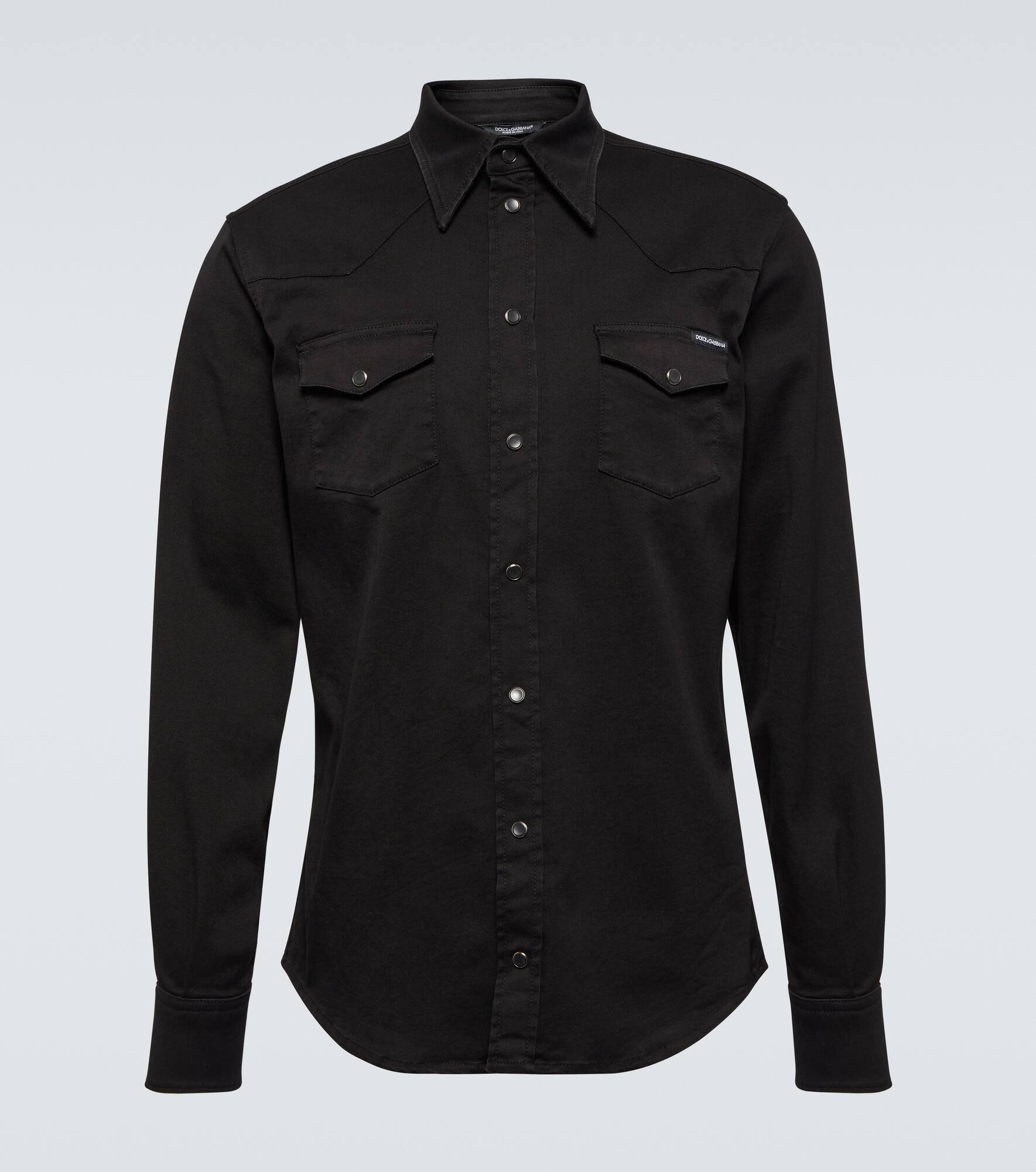 Dolce&Gabbana takes cues from Western-inspired tailoring with this topstitched shirt. Made of a stretchy cotton blend, this style has a curved yoke, embroidered logo patch, buttoned chest pockets, and a shirting hem. Product Details - Material: 70% cotton, 28% polyester, 2% elastane - Made in Italy - Care instructions: machine wash at 30 degrees - Designer color name: Combined Colour - Closure: snap-buttoned front - Item number: P00816107 Size & Fit - Fits small to size - we recommend trying one size larger - Slim fit - Mid-weight material - Stretchy fabric - Falls below the hip - The model in the picture is 185cm-6'1" and wearing a size EU 40
