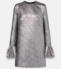 Feather-trimmed lamé minidress