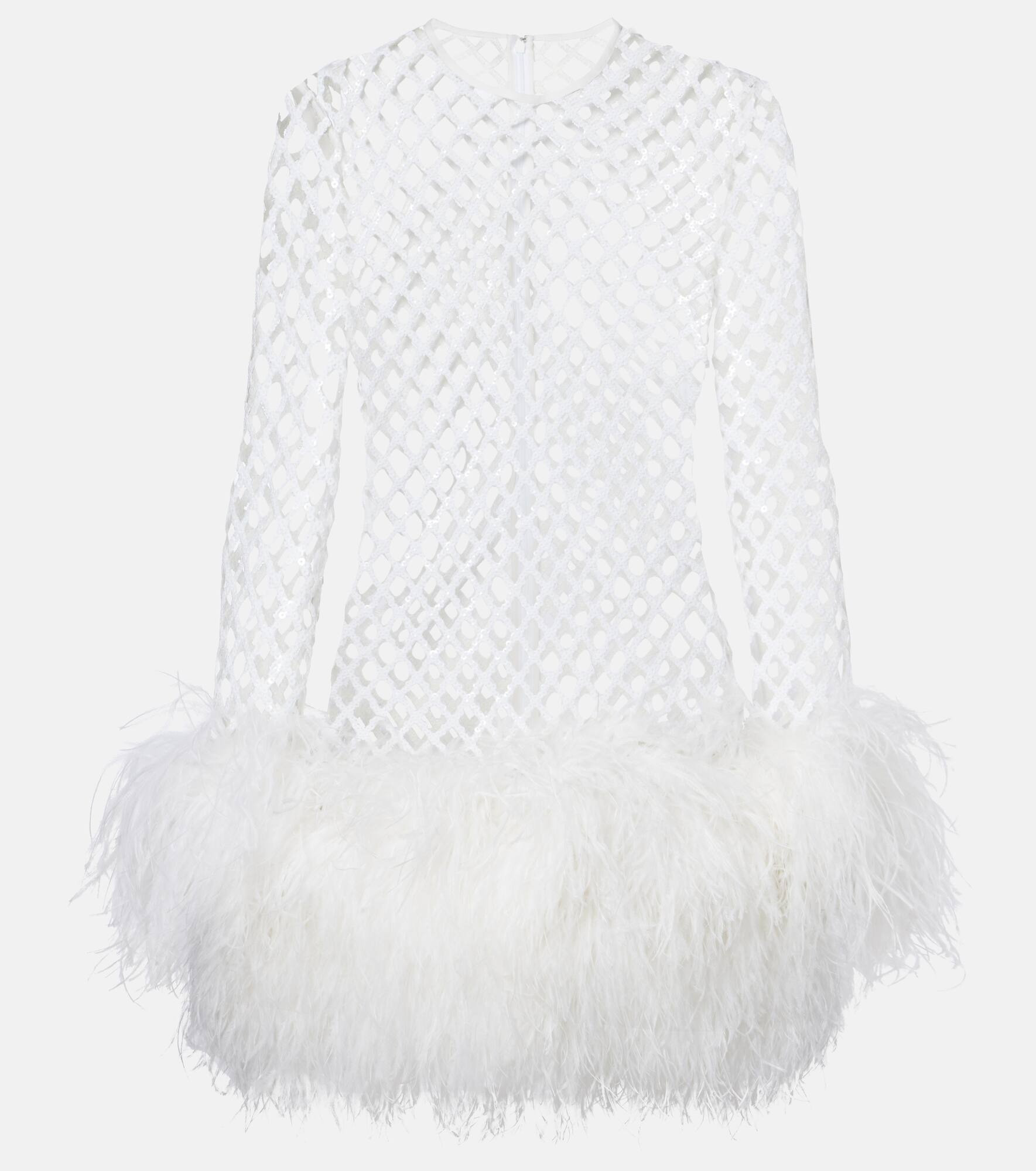 Feather-trimmed sequined minidress
