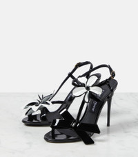 Floral-appliqué patent leather sandals