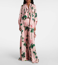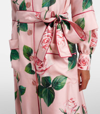 Floral belted silk satin maxi dress