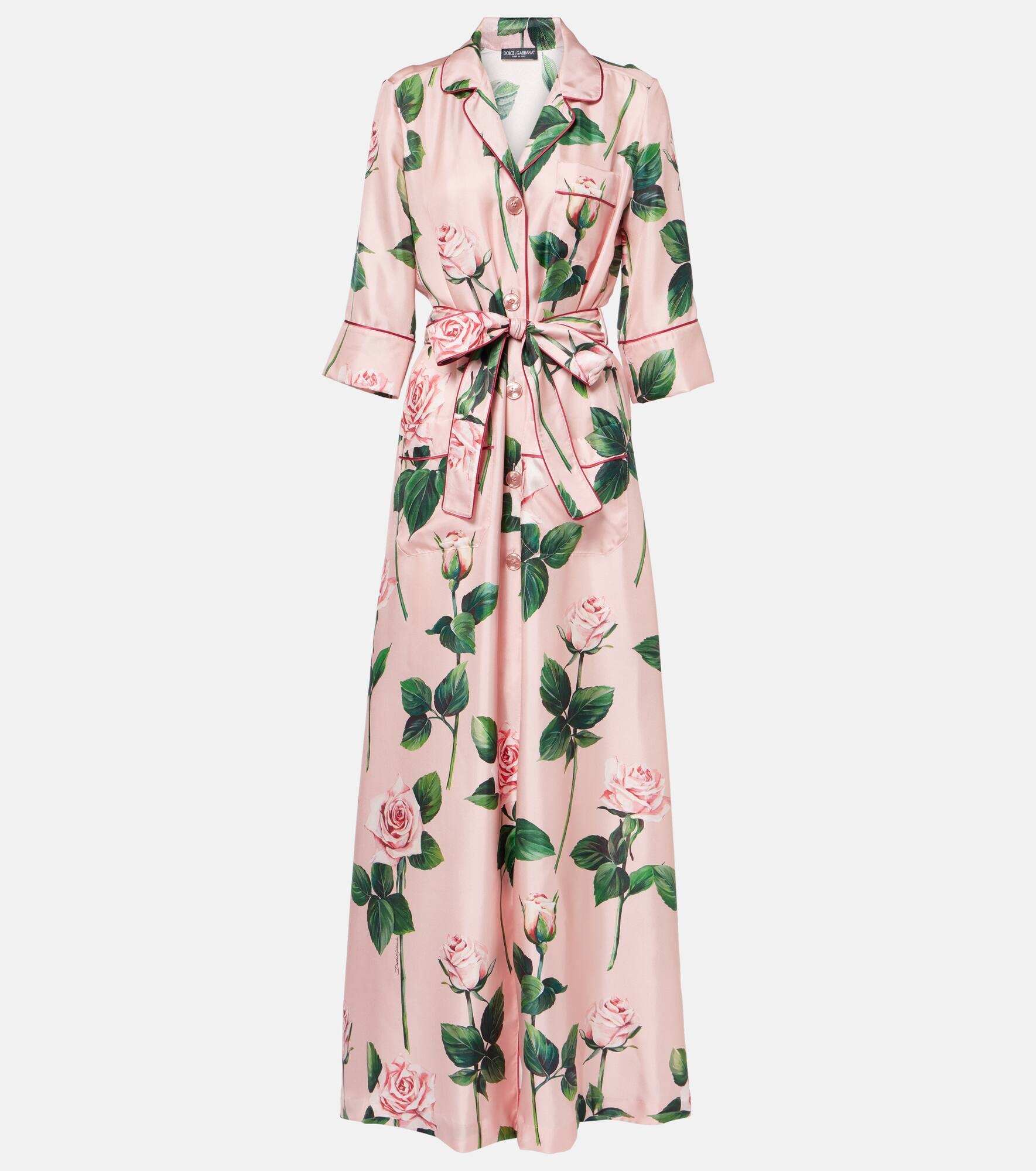 Product Details - Material: 100% silk - Care instructions: dry clean - Made in Italy - Designer color name: Rose C/Stelo F.Rosa - Closure: buttoned front - Pockets: slit pockets, breast pocket - Detachable band - Item number: P01008539 Size & Fit - True to size - Loose fit, comes with belt - Non-stretchy fabric - The model seen in the picture is 178cm-5'10" and wearing a size IT 40