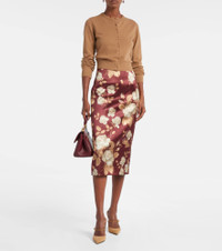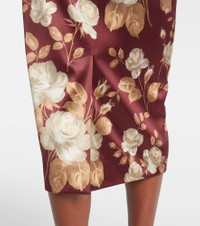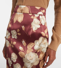 Floral high-rise satin midi skirt