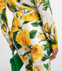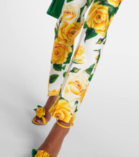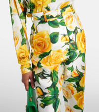 High-waisted mikado pants with yellow rose print