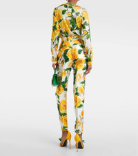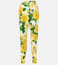 Floral high-rise silk-blend straight pants