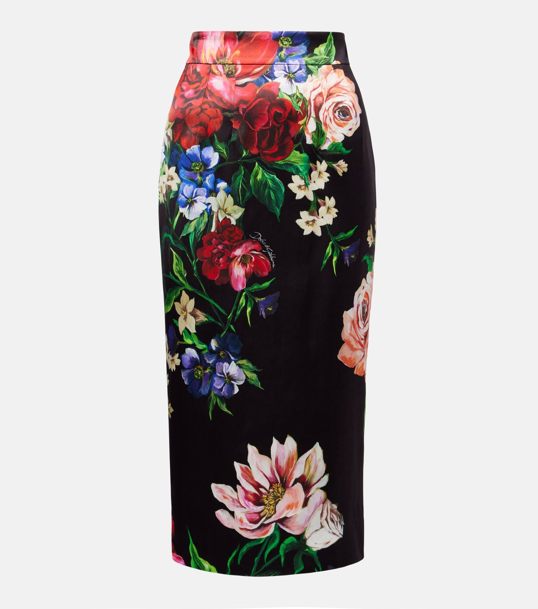 Sicilian culture is at the heart of Dolce&Gabbana's aesthetic, which attributes most of its bold styles to its Italian heritage. This midi skirt features a structured silhouette with concealed zipped-back closure and statement-making all-over floral print. Product Details - Material: 96% viscose, 4% elastane - Care instructions: dry clean - Made in Italy - Designer color name: B.Fiori Anthici Fner - Item color: multicolor - Lining: 92% silk, 8% elastane - Closure: concealed zipper - Item number: P01024564 Size & Fit - True to size - Non-stretchy fabric - slit length 27,0cm-10.5" - The model seen in the picture is 178cm-5'10" and wearing a size IT 40