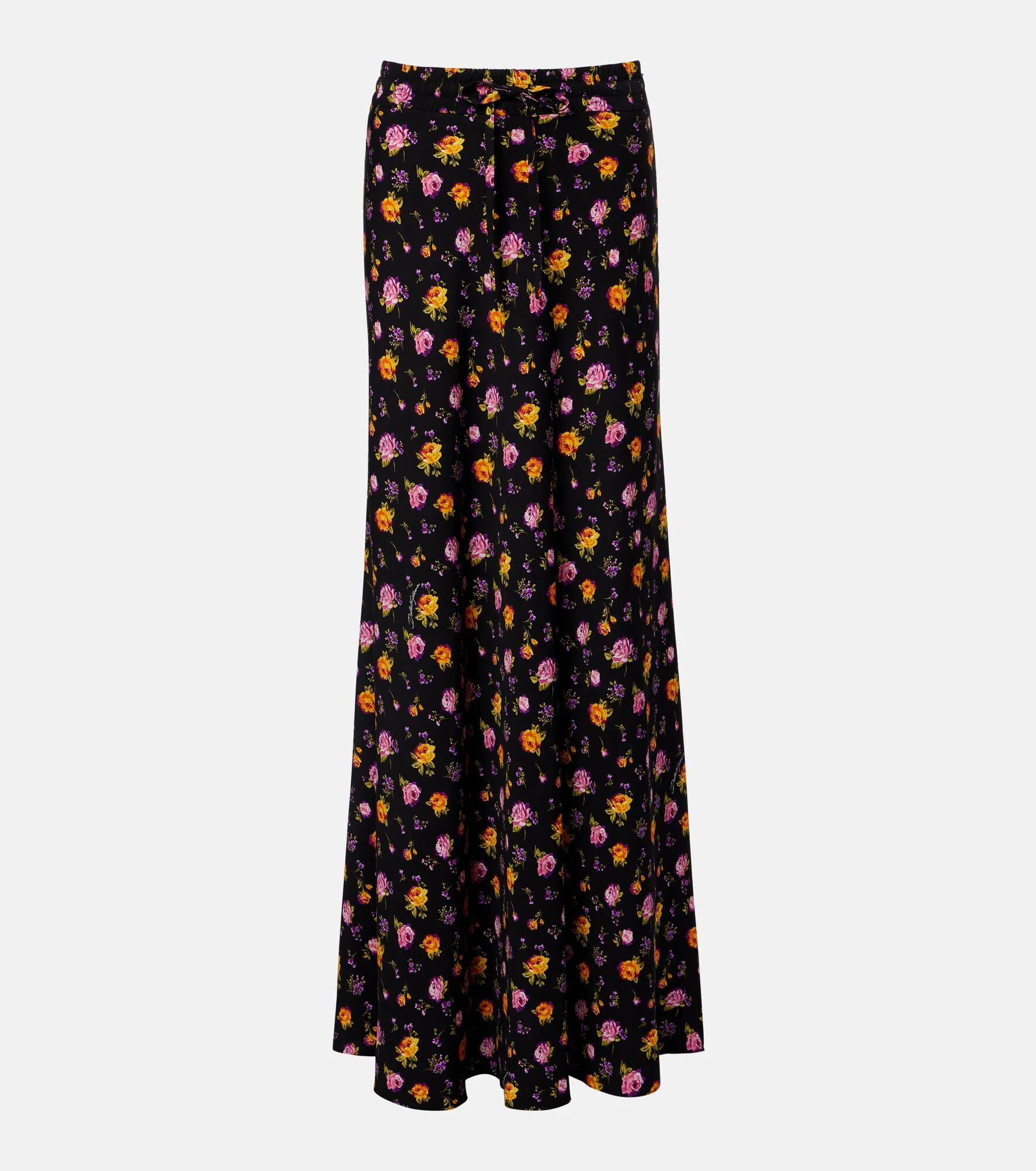 Sicilian culture is on display in Dolce&Gabbana's aesthetic, with bold styles inspired by the brand's Italian heritage. Cut from silk-blend charmeuse into a flared silhouette, this maxi skirt is designed with printed roses for a romantic finish. Product Details - Material: 94% silk, 6% elastane - Care instructions: dry clean - Made in Italy - Designer color name: Rose/Mazzolini F.Ner - Item color: black, multicolor - Elasticated drawstring waist - Item number: P01122802 Size & Fit - True to size - Elasticated waist - Slightly stretchy fabric - High-waisted - The model seen in the picture is 178cm-5'10" and wearing a size IT 40